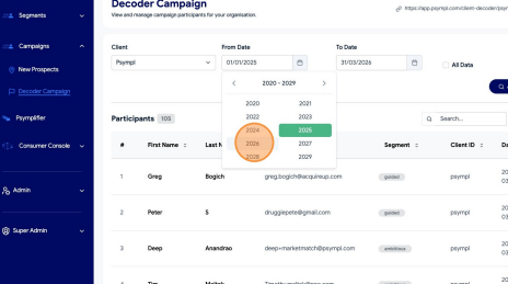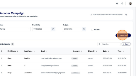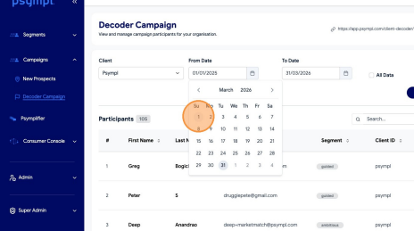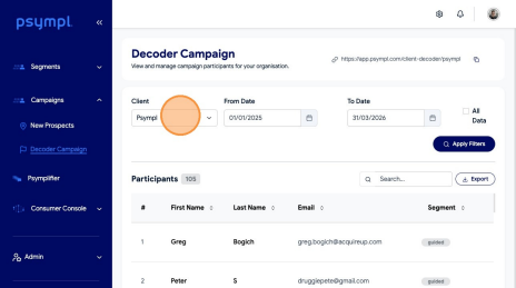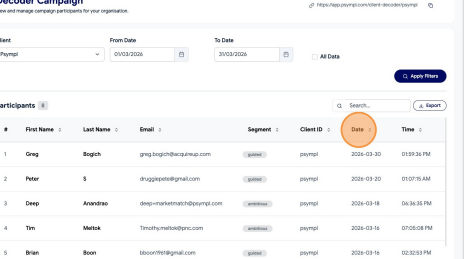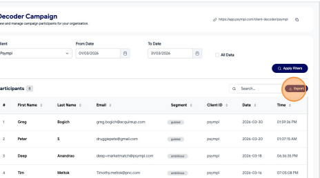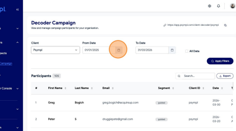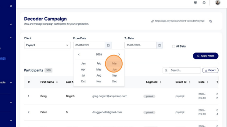 Learn how to filter and export your Decoder Campaign data from the Psympl dashboard. This guide simplifies the process of selecting specific date ranges to ensure you get the exact reporting information you need.